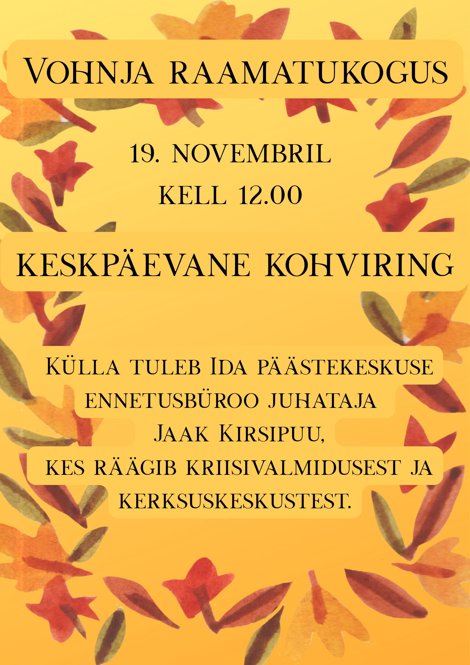 Lugemistunni eesmärgiks on propageerida lugemist eelkõige laste ja noorte hulgas ning kutsuda üles võtma aega lugemiseks. Kadrinas kell 10.00 Vohnjas […]