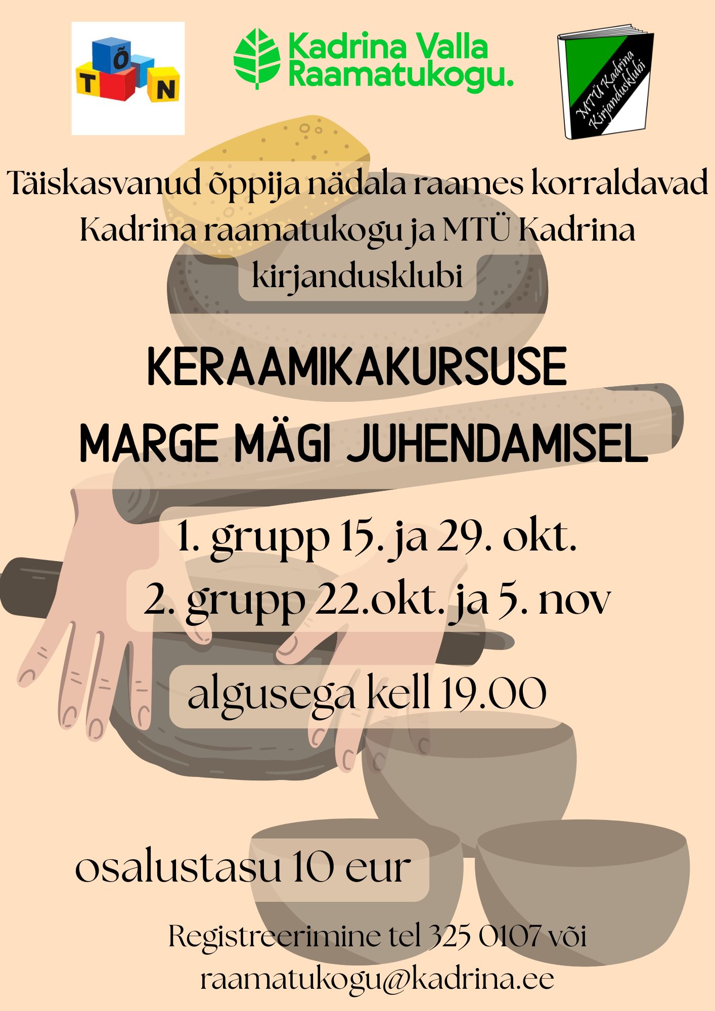 Täiskasvanud Õppija Nädala raames korraldavad Kadrina valla raamatukogu ja MTÜ Kadrina kirjandusklubi keraamikakursuse Marge Mägi juhendamisel. Esimene grupp koguneb 15. […]