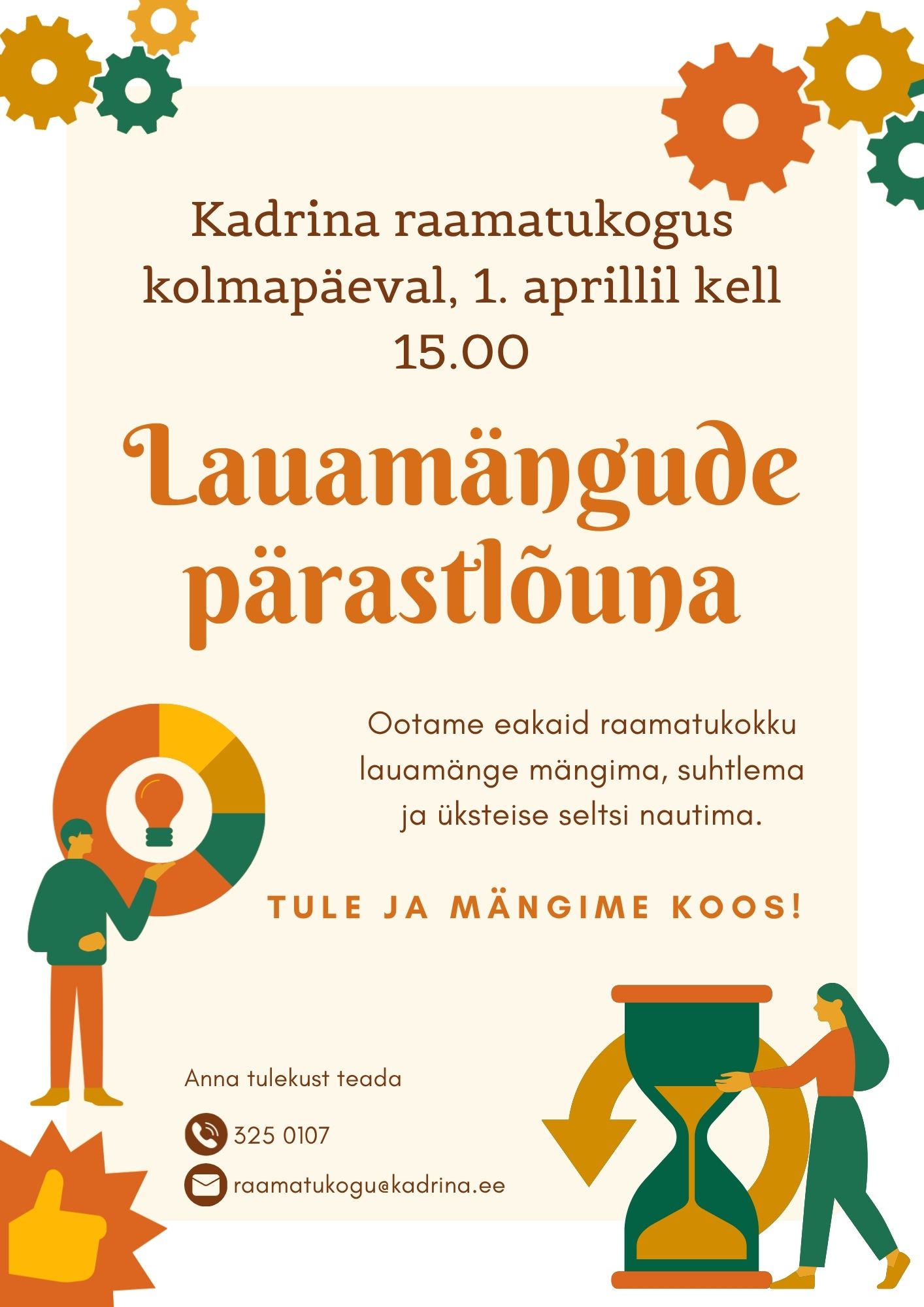 Anna tulekust teada tel 325 0107 või raamatukogu@kadrina.ee.